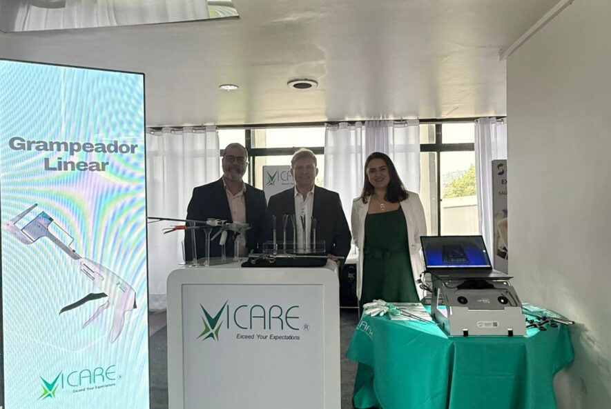 Os participantes conheceram o Grampeador Endoscópico Permanente VICARE, inovação que revoluciona a cirurgia ao ser reutilizável e sustentável, além de praticarem técnicas em simuladores.